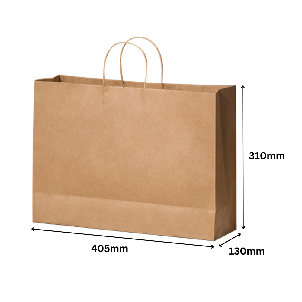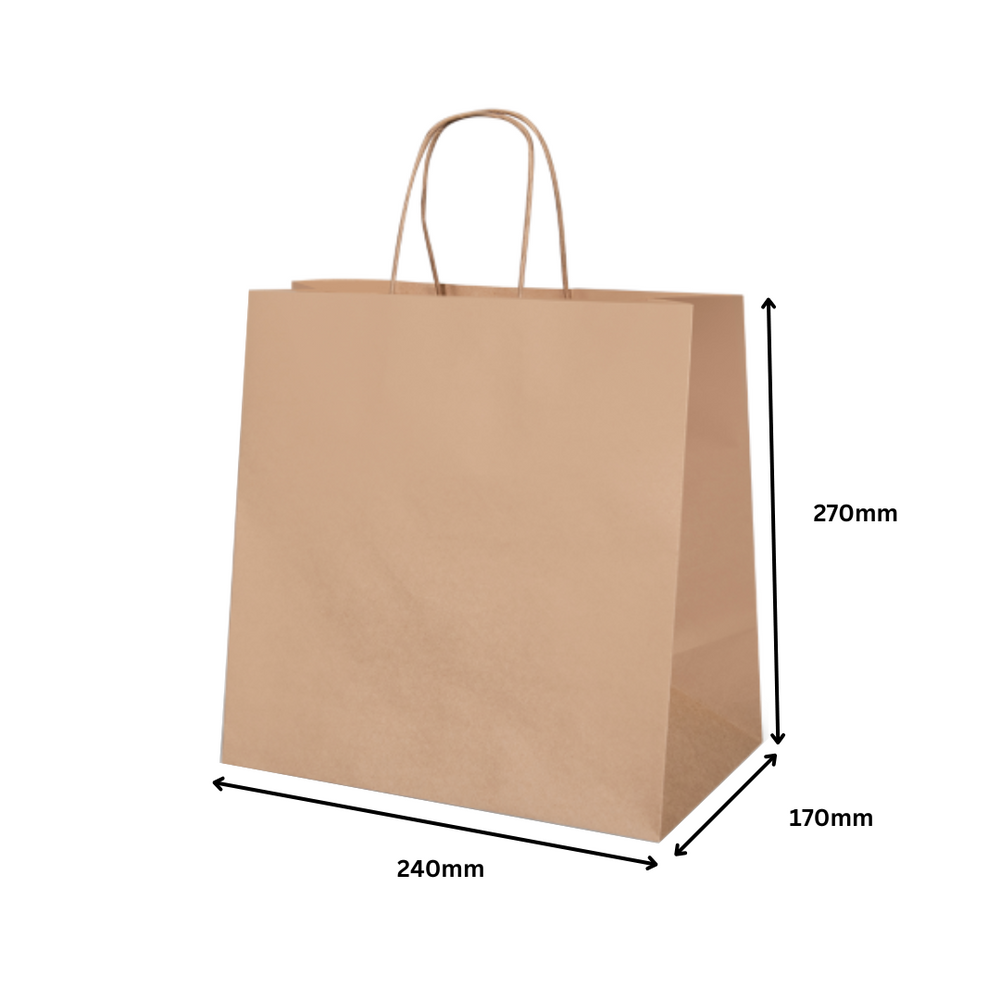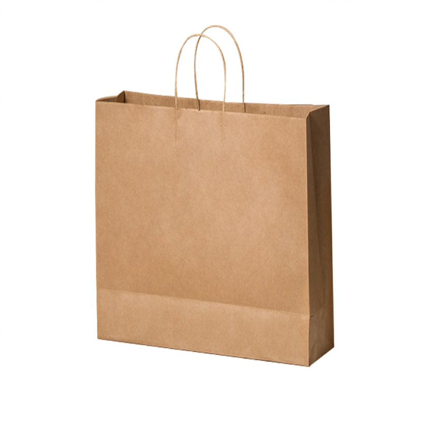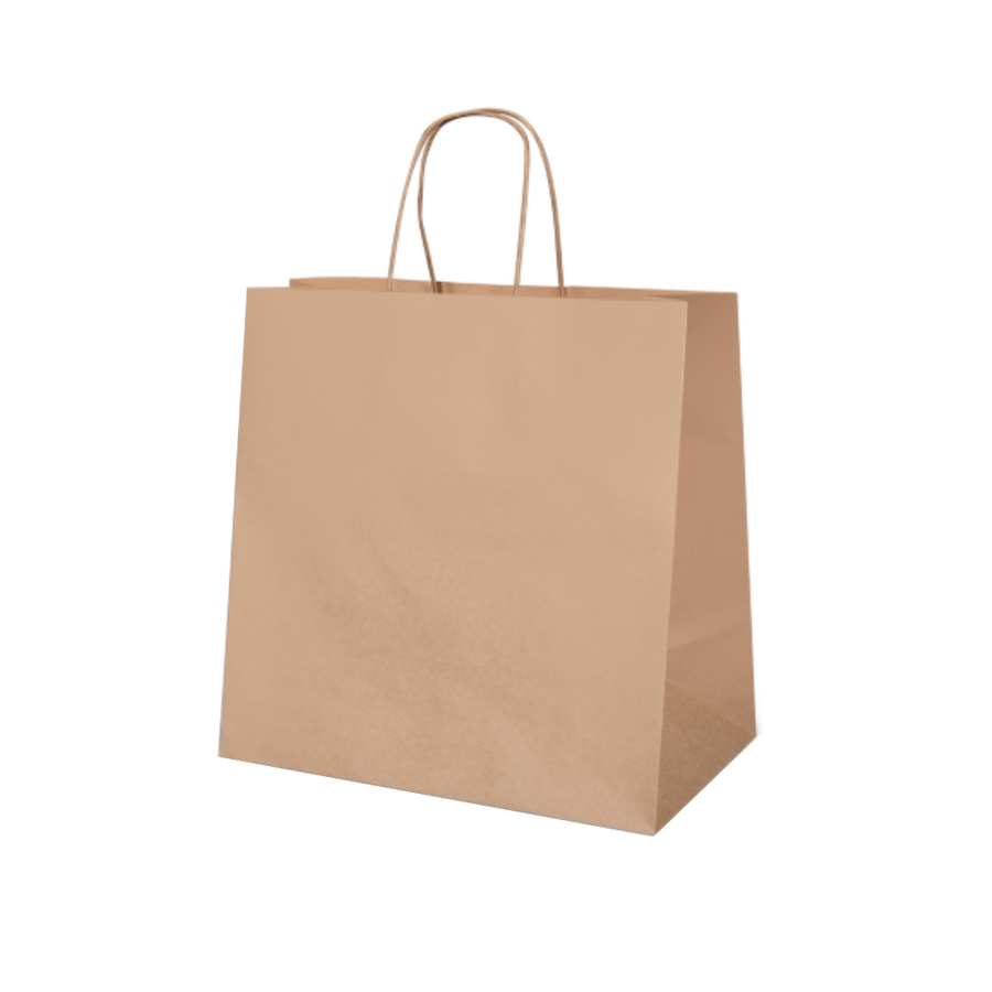 Each bag is equipped with strong paper or twisted handles for comfortable carrying, even when full. The flat, folded base provides structure and balance, allowing the bag to stand upright when open—ideal for efficient packing at point of sale or in production lines. We also offer the option for custom printed bags to meet your specific branding needs.