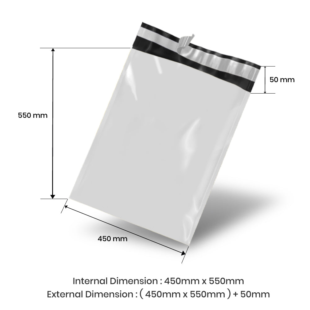 450mm x 550mm + 50mm Poly Mailing Courier Satchel White